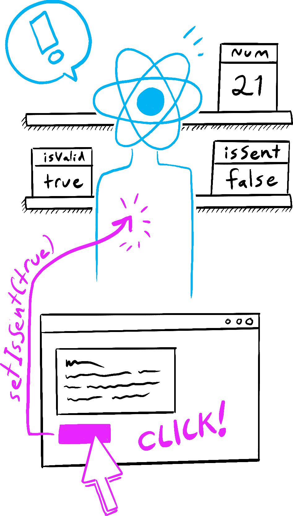 olay yöneticisi çalıştırılır.setIsSent(true)